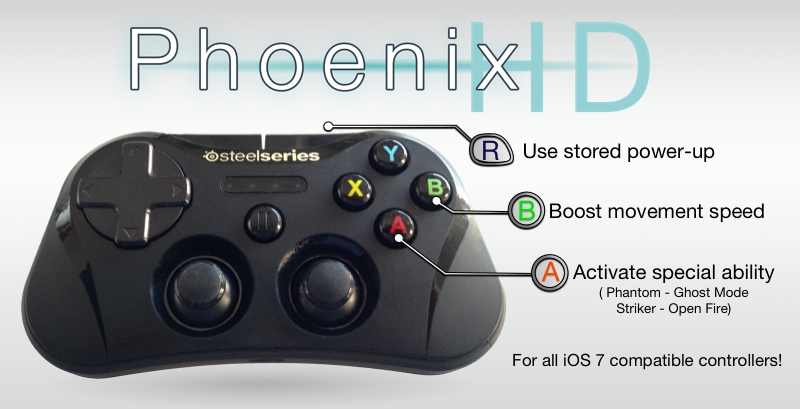 Yes! Phoenix supports iOS 7 Controllers. The left stick and directional pad move the ship around as you would expect. For the functions of the buttons, please check the diagram below.